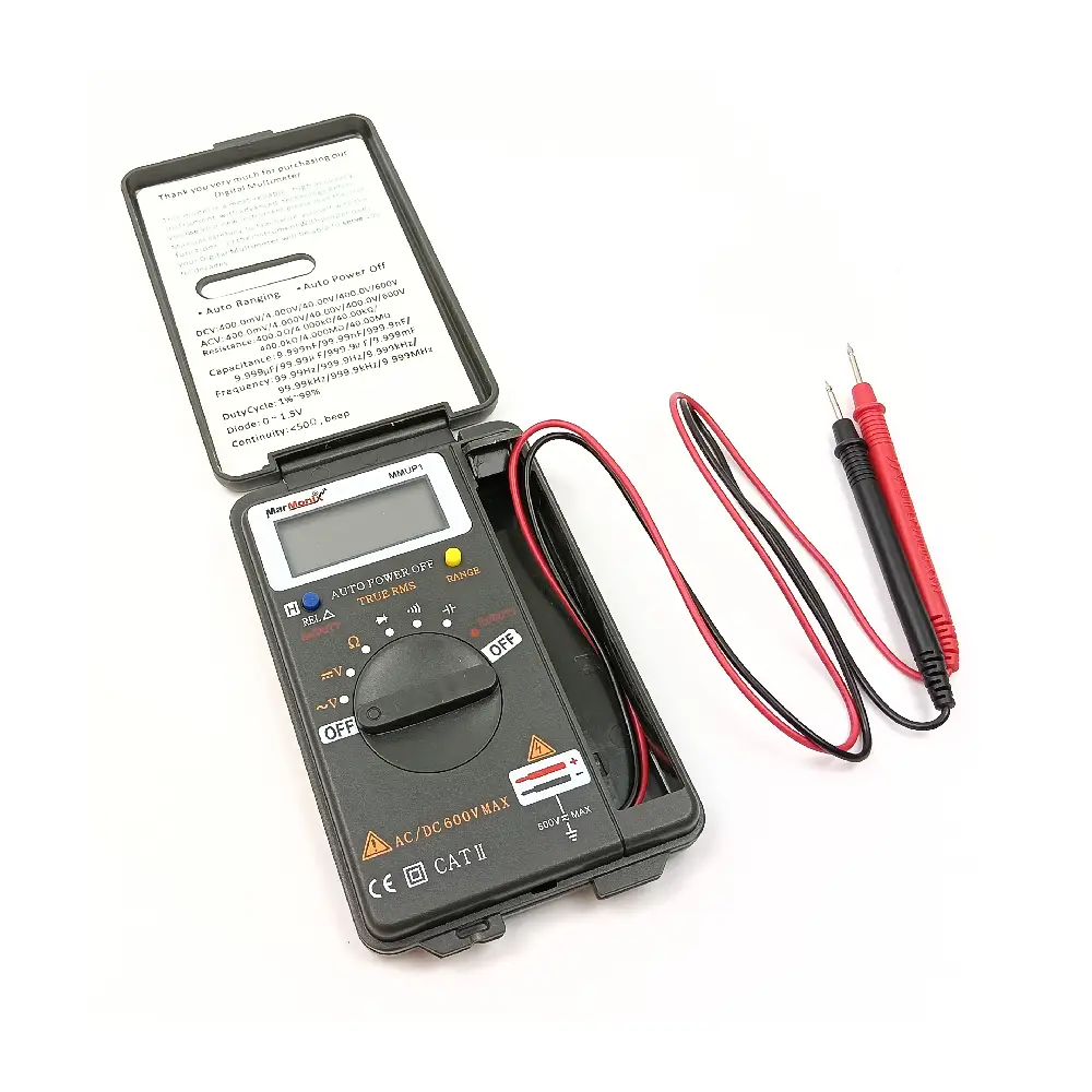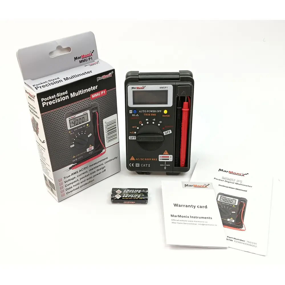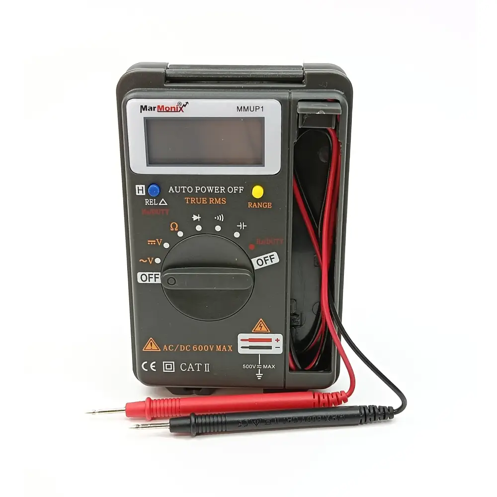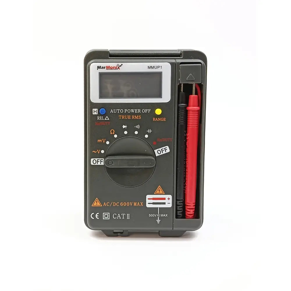 The MarMonix MMU P1 Intelligent Digital Multimeter is a portable and compact pocket-type multimeter with a flip cover and storeable test leads. Designed for students, DIY enthusiasts, maintainers, and professionals, it combines portability with reliable True RMS accuracy.
